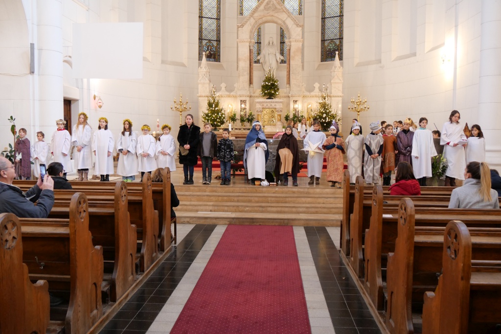 A Jézus Szíve templom hittanosai 2023. december 25-én, a diákmise kezdetén énekes-zenés pásztorjátékot mutattak be. Kicsik és nagyok egyaránt szerepeltek a Jézus születését bemutató misztériumjátékban. Az ügyesen kiválasztott karácsonyi énekek között többnek az éneklésébe is be tudtak kapcsolódni a szentmisére érkezett hívek.